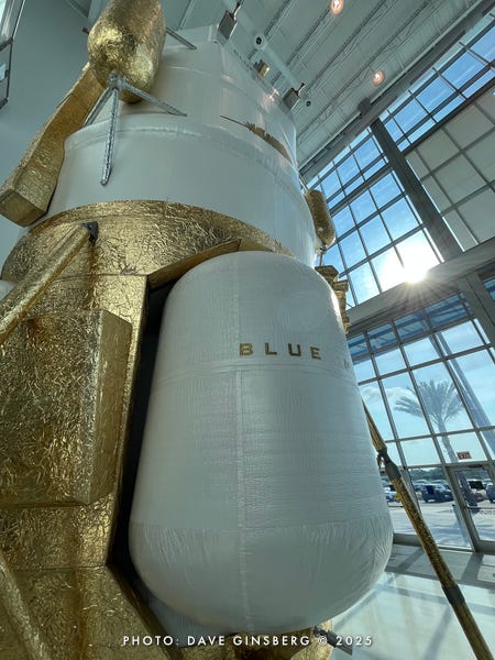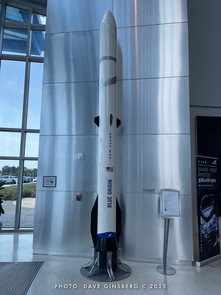 Nearby, a scale model of New Glenn stood like a sentry at the entrance.