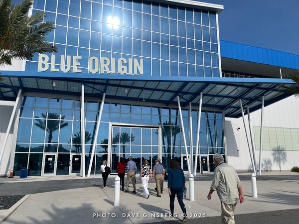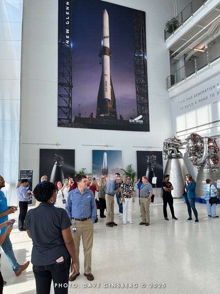 Here’s a photo I shared last time showing our tour group in the bus with all our happy faces after we learned we would be touring the Blue Origin New Glenn rocket manufacturing facility.