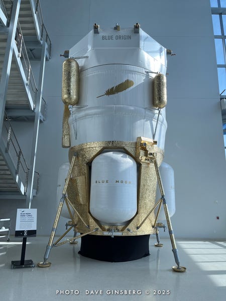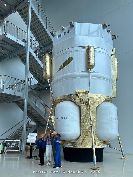 Elsewhere in the vast lobby, were monuments to Blue Origin’s other signature projects. A giant poster of their latest and largest rocket, New Glenn, adorned one of the walls.