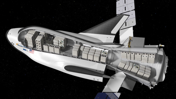 The basic airframe of the Dream Chaser can be configured for either crewed transport or cargo. If I understood our guide correctly, both configurations can use the same life support provisions, enabling it to support either human crew or cargo requiring a climate-controlled environment, including live payloads.
