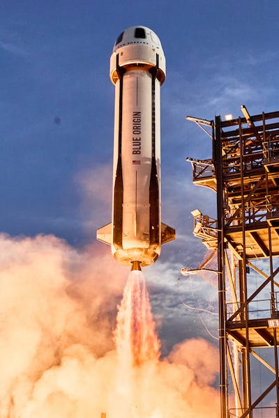 Blue Origin has several space projects going at the present time. Their New Shepard has been taking people on vertical hops to get brief peeks at the Earth and sky from the edge of the atmosphere since 2019.