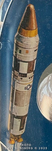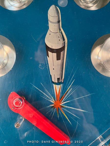 Returning to our pinball’s mission, after speeding by the Mercury capsule, the ball strikes a small red passive bumper and catches a quick glimpse of a Titan II intercontinental ballistic missile (ICBM) soaring skyward.