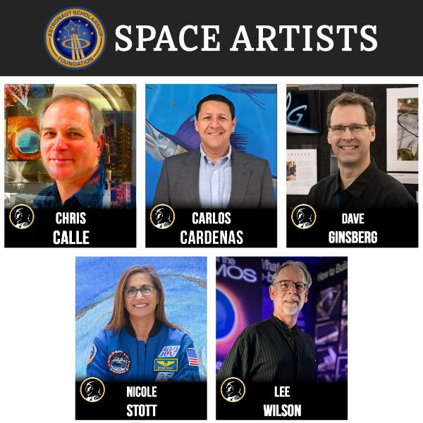 I am very happy that I will once again be exhibiting my space-inspired artwork at the U.S. Astronaut Hall of Fame Induction weekend events this year in Cocoa Beach, Florida. I will be joining notable space artists Chris Calle, Lee Wilson, and astronaut/artist Nicole Stott. This year will also feature artwork by Carlos Cardenas.