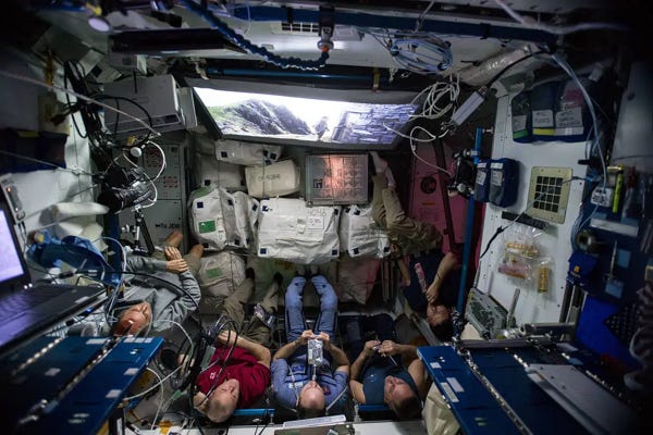 Here we see the crew of ISS Expedition 54 enjoying Star Wars: Episode VIII - The Last Jedi (2017).