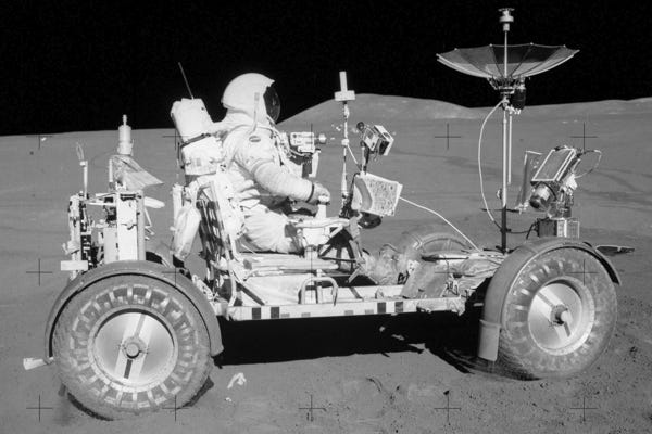 Setting the practicality of those moon cars aside for a moment, one has to give credit once more for predicting the future. The final three Apollo lunar landing missions, of course, brought cars with them – albeit somewhat more bare-bones in appearance, yet arguably more functional.